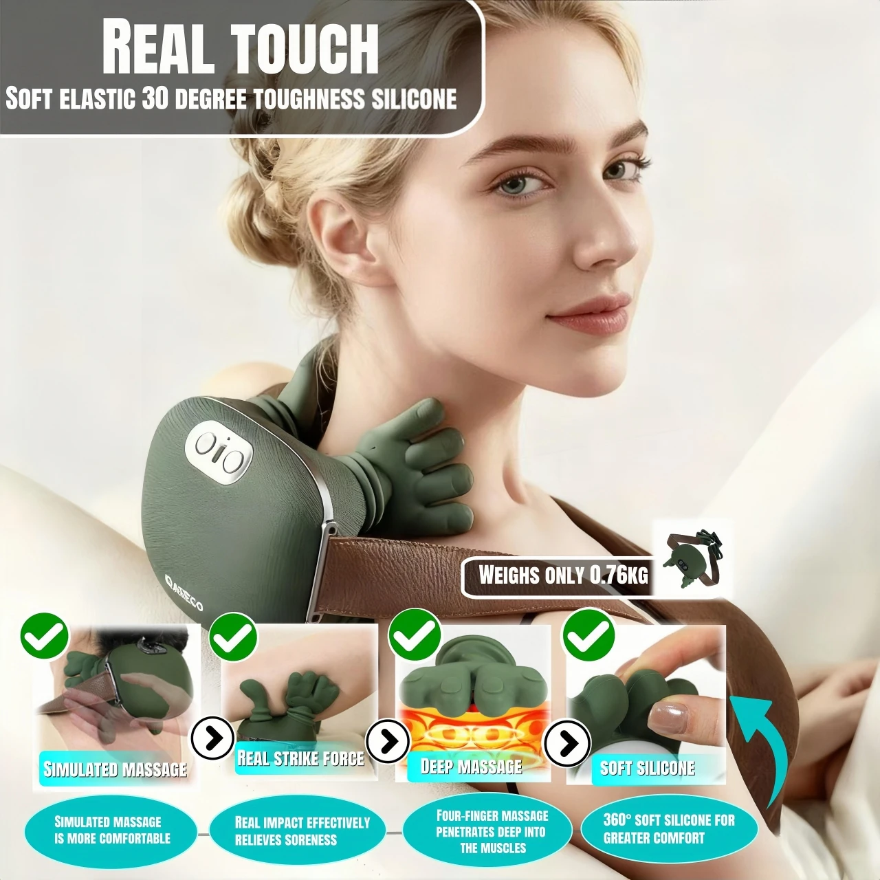 User-Friendly Design: The neck and shoulder massager offers two wearing options: handheld or strap-on, suitable for various usage scenarios. This neck massager is lightweight and compact.