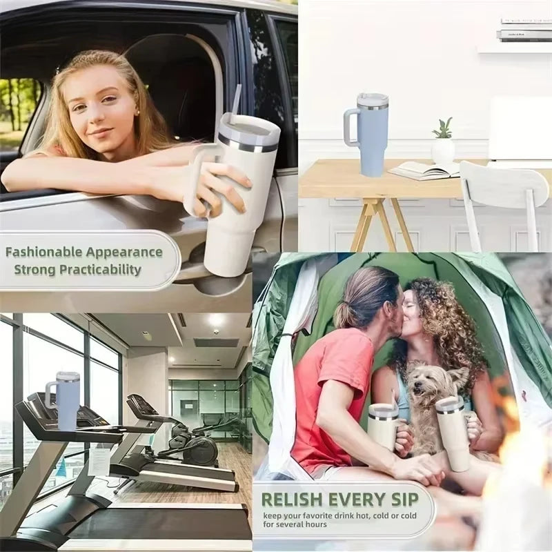 Insulated Tumbler with Handle and Straw Double Wall Thermal Iced Travel Mug for Car & Outdoor Use
